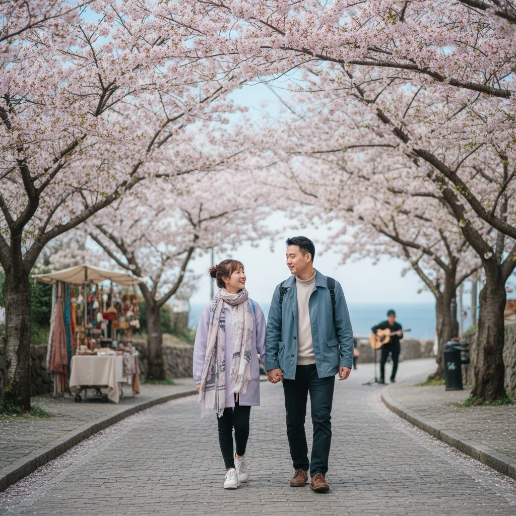 마지막으로 만석부두 주변 산책로에서는 시원한 바닷바람을 맞으며 벚꽃을 즐기는 이색적인 경험을 할 수 있습니다. 다른 곳에 비해 덜 알려져 있어 한적하게 '꽃멍'을 때리기 좋고, 인근 수산시장에서 신선한 회 한 점을 곁들이면 완벽한 봄날의 외출이 완성됩니다.